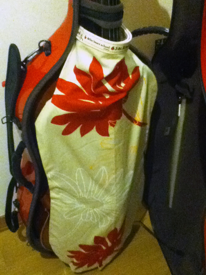2013/04/24 Category : cello チェロ・デッケ 一小節目からくじけてます。K先生の言う通りにならないよぅ。 (p_q、)シクシク(あ、コレはモーツァルトのことじゃなくてエチュードです)しくしく…ん?気づかぬうちにチェロの本体に細かい傷が。全く覚えがない…。どうやら移動中にケースの中で弓があたっているような。…というわけで年末(ずいぶん前の話ね)にざくざくとケース内カヴァーを作りました。楽器全体を包むのではなく、ばよりんのケースの中によく入っているタイプ。(めんどくさがりだから)楽器の上にペロンとのせる布、デッケというらしい。アレのチェロ用はないものか。バイオリンではズレないみたいですが、チェロは立てているのでただぺろんと置いただけではダメそうだな…。うーん。どうやらなさそうなので、自作。型紙は新聞紙。チェロを置いて型取りするのは躊躇われたので、チェロケースを置いてマジックでびーっとまわりをかたどります。はい、型紙出来上がり。ネックの部分はなし。適当な布にあわせ、ちょきちょき。端からおおよそ2cm程度の部分をちくちく縫う。ミシン無いので、手縫いです。ほほ。ネックのところでとめられるようにマジックテープをつけて完成。これを収納時にチェロ様のうえにはらりとかけて、ネックの後ろでマジックテープを留め、チェロ様の両肩にちょっとかかるようにして差し上げれば。ほーらチェロ・デッケの出来上がり。(すごくいい加減ですけど)気に入った生地が見つかったらお着替え用にまた作ろうと思います。…手縫いだけどね。
