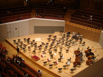 2009/11/15 Category : cello ヤンソンス&バイエルン放送響&ヨーヨー・マ! いってきました!ミューザ川崎シンフォニーホール。開演前。チェロはやや中央になってます。マさまの席。指揮:マリス・ヤンソンスチェロ:ヨーヨー・マバイエルン放送交響楽団 【曲 目】1部 ドヴォルザーク:チェロ協奏曲 ロ短調 作品104 B.1912部 ブラームス:交響曲第2番 ニ長調 作品73 ドウォルザークのチェロ協奏曲。導入から弦がキレイ〜。バイエルン放送響は以前聴いたときより更に素晴らしくなっているような。ヤンソンス先生も素敵でした!とにかくヨーヨー・マさまの音色がたまらんです。若干音が弱くなるときもありましたが、浮き出てくるあの音色はマさまならでは。このコンサートを一年のメインにしていた甲斐がありました。3階でしたので身を乗り出して聴いていました。そして、1部のドヴォルザークが終了すると…。嵐のような拍手の中、マさまはチェロパートのトップサイドにすわり(そこの方は後ろのステージにちょこんとおかけになってました(笑)、チェロトップとパリエール:2台のチェロのためのソナタ 第3楽章を猛然と、かつ優雅に(!)演奏。さすが、チェロトップですわ。激上手。更に、チェロ2人とビオラ、オーボエを前の席に連れてきて(笑)モリコーネ:ミッションを情感たっぷりに(めちゃくちゃよかった)演奏し、その上、J.S.バッハ;無伴奏チェロ組曲第1番を演奏してくださったのでした!拍手の嵐です。涙が出そうになりました。堪能でございます。マさまのリサイタルに来たかと思っちゃった(笑)。20分の休憩後、第2部です。ブラ2。ハープが出てきたり(使ったっけ?)、バイオリンや、チェロパートの椅子が増やされたりして、やはり交響曲は人数がいるわね、と思っていました。わらわらと楽団の人が出てきました。席に着きます。チェロも2席増えて人が座りました。!!!!マさまがっ!!!チェロパート後方におかけになっております!えっえっ??一緒に演奏するの?そう、なんです。ソリストは1部で引っ込むものかと思っていたら!一緒になって弾いてる!しかもスゴい楽しそう!最初は堅く椅子に腰掛けてお行儀よく弾いていたチェロパートの方達もどんどん、マさまの魔法にかかったように演奏に乗っていく様子がよくわかります。楽しさが伝わっていくのはオケの人たちだけでなく見ているこちらにも、です。あー、幸せ〜♪そして、アンコールはやはりグリーグ:ソルヴェイグの歌やたっ!これが生で聴けるとは…号泣。7月に弾いたばかり…の曲とは大違いです(当然)。最後にブラームス:ハンガリー舞曲ジャン!の最後の一音までびしっときまって、弾いてる方も気持ちがよかったんじゃないでしょうか。拍手の中、二度も三度も舞台に出てきてくれたヤンソンス先生、相変わらず素晴らしい。最後は観客がスタンディングでブラボー!本当に素晴らしかったです!(臨席の方は1部で帰ってしまわれたようですが…もったいないなあ)明日自分は弦楽四重奏の本番がありますが、幸せボケで弾けなかったらまずい(^_^;。マさまを見ていて、自分が楽しく弾いて、それを聴いた人が幸せを感じてくれたら嬉しい……だろうなと思いました。修行が足りないけど。