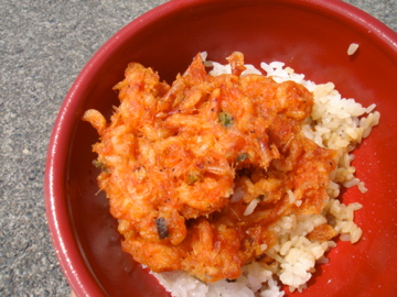 2009/05/10 Category : other 由比ケ浜のかき揚げ丼 お見苦しい点はお許しください(^_^;食べ出してから写真とっとかないと!と慌てて撮りまして。「浜のかきあげや」@由比港日曜の昼間でずいぶん行列ができていましたが、これ(桜えびのかき揚げ丼)を食わねば!と気合い入れて出てきたのでずるずると並びます。(並んでまで食べるなんて,ホントに滅多にないことなんですが…)日差しが強くて夏のようでした。潮の匂いも♪あまりにお腹がすいていたのであっという間に完食。さすが名物、「さくさく・えびだらけ〜♡」でご満悦。今日は休日。チェロの練習は………………明日。σ(∀`*) ヘヘッ…